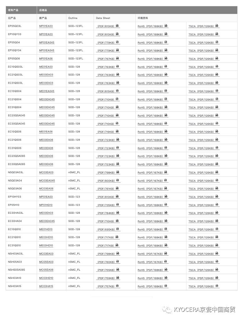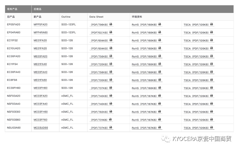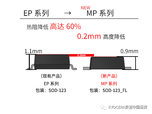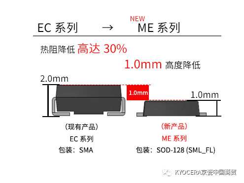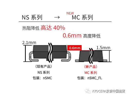 現(xiàn)在,京瓷更新了現(xiàn)有分立式半導(dǎo)體SMD封裝產(chǎn)品的EP/EC/NS系列,對(duì)應(yīng)的新系列名為MP/ME/MC系列。